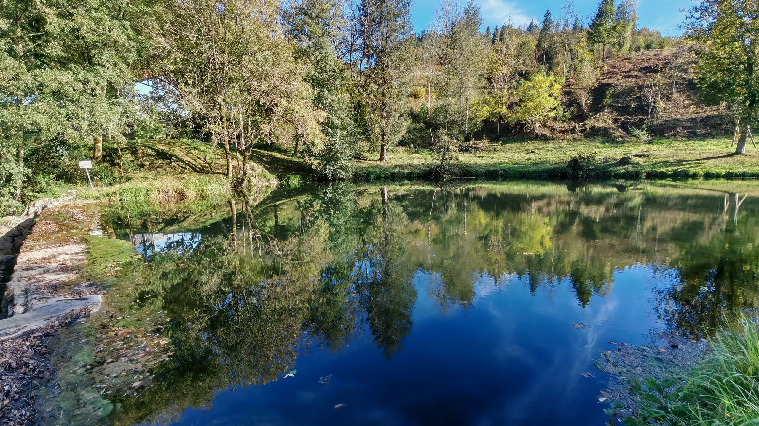 En el río te puedes bañar, el agua está fresssssca fresssssca, pero se aguanta. Eso sí, está lleno de algas y algunas zonas con fango.